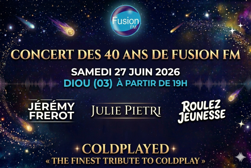 Pour célébrer quatre décennies de partage et de musique, Fusion FM vous donne rendez-vous pour une soirée exceptionnelle le samedi 27 juin à Diou (Allier). Préparez-vous à vibrer lors de ce grand concert en plein air qui s'annonce déjà mémorable.